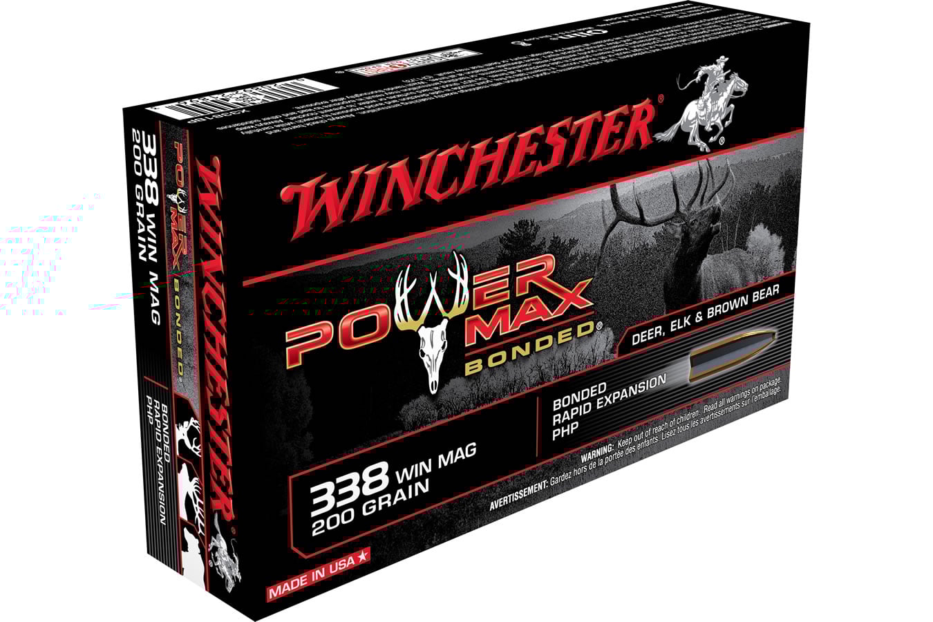 Power Max Bonded is specifically designed for the whitetail deer hunter and takes the time-proven jacketed bullet design to a new level of performance. Key features of the Super-X bullet include: Protected hollow point PHP design, lead core bonded to jacket with proprietary process, massive frontal area of mushroom is more than double original diameter, lead remains bonded to jacket after impact.