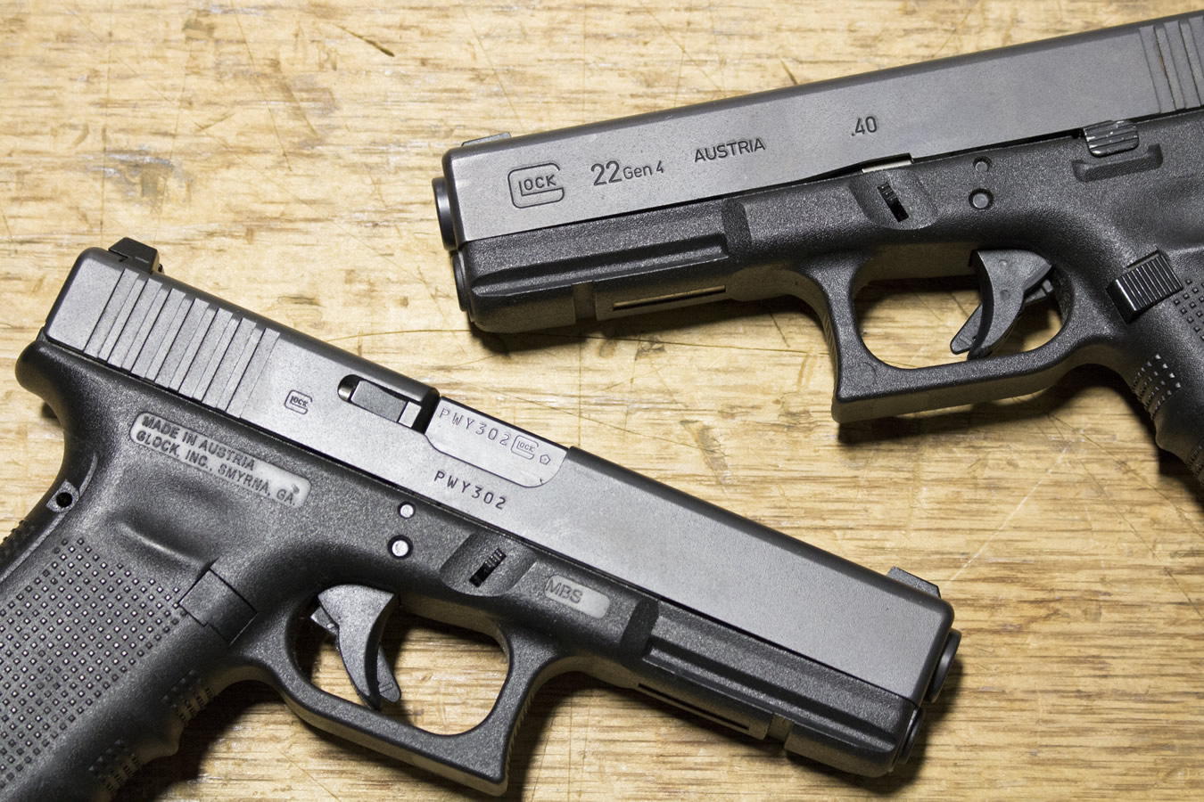 These photos represent the overall condition of these Glock 22 Gen4 police trades, which are in very good condition. Each pistol comes with two 15-round magazines.