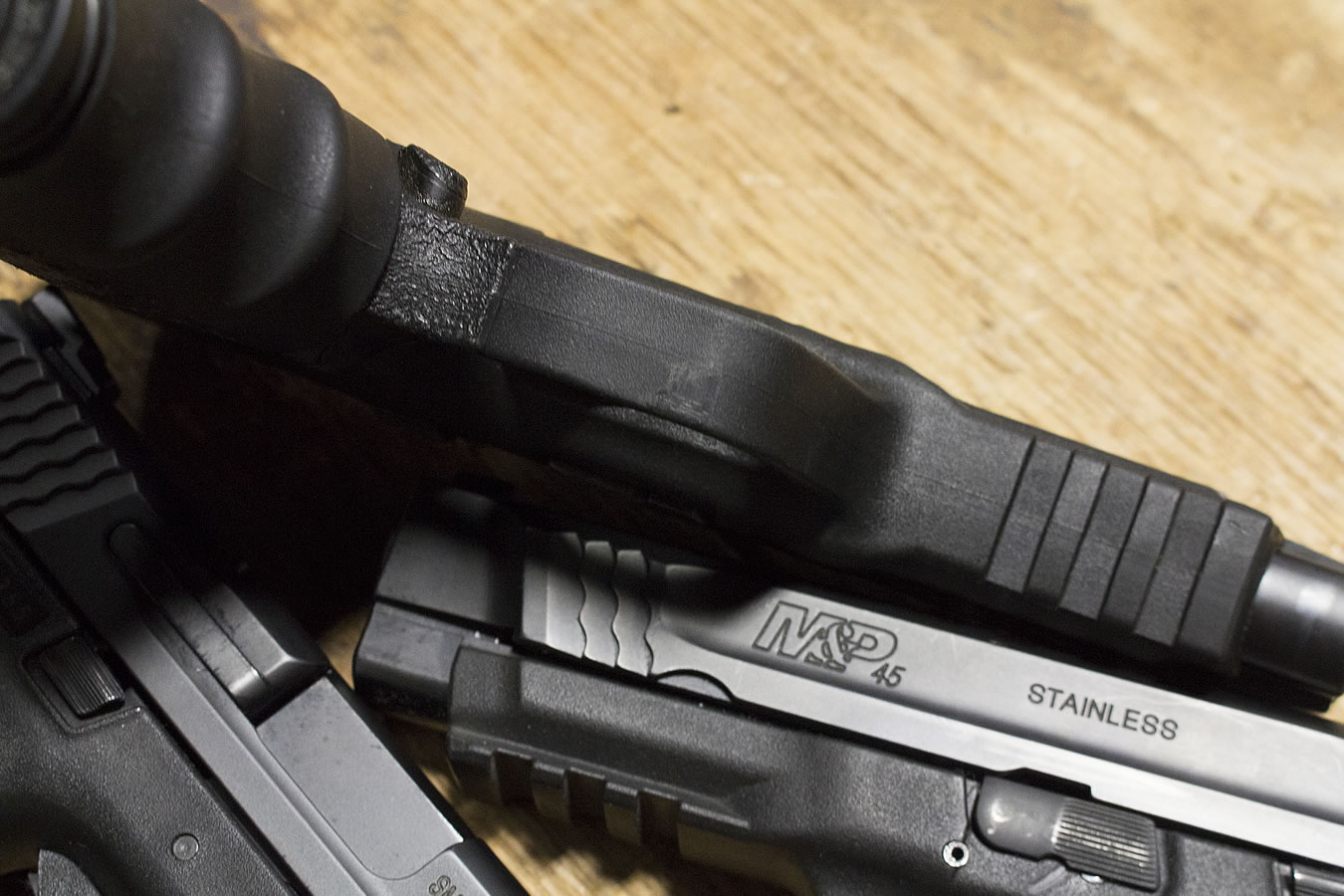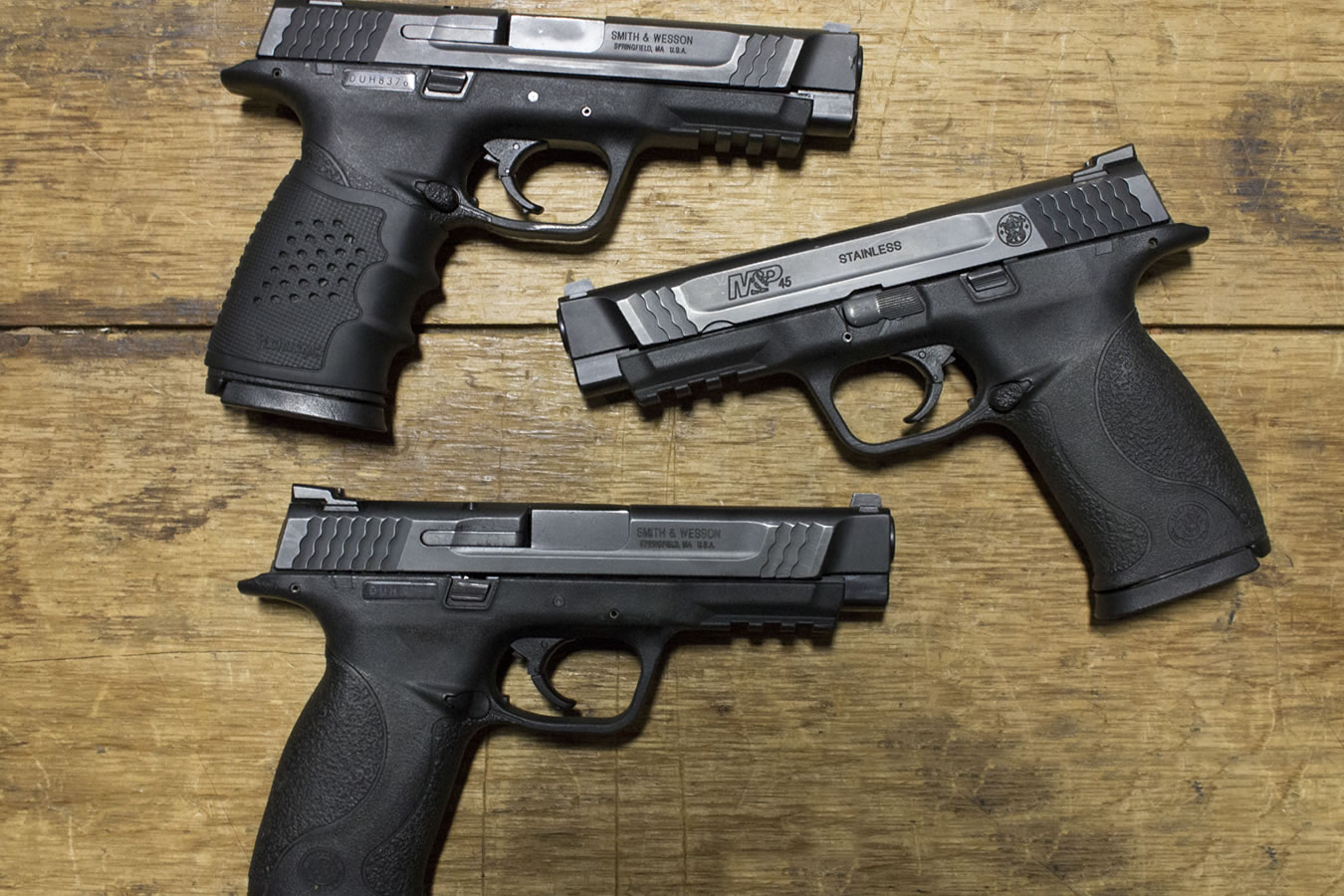 The photo represents the overall condition of these Smith & Wesson M&P45 police trades, all of which are in fair condition.