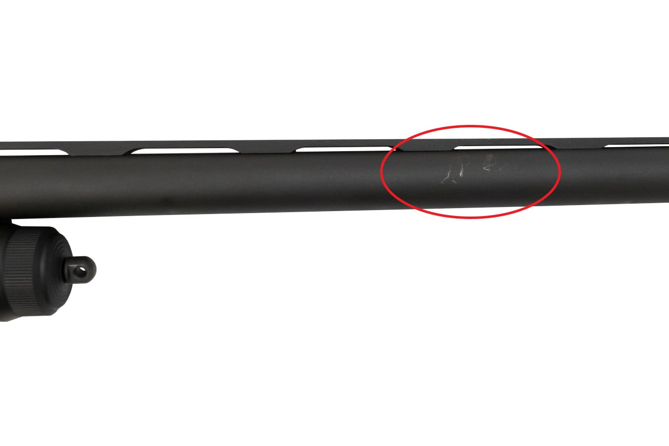 These shotguns are new, old stock, and include some scratches on the barrel, as seen in the provided photos.