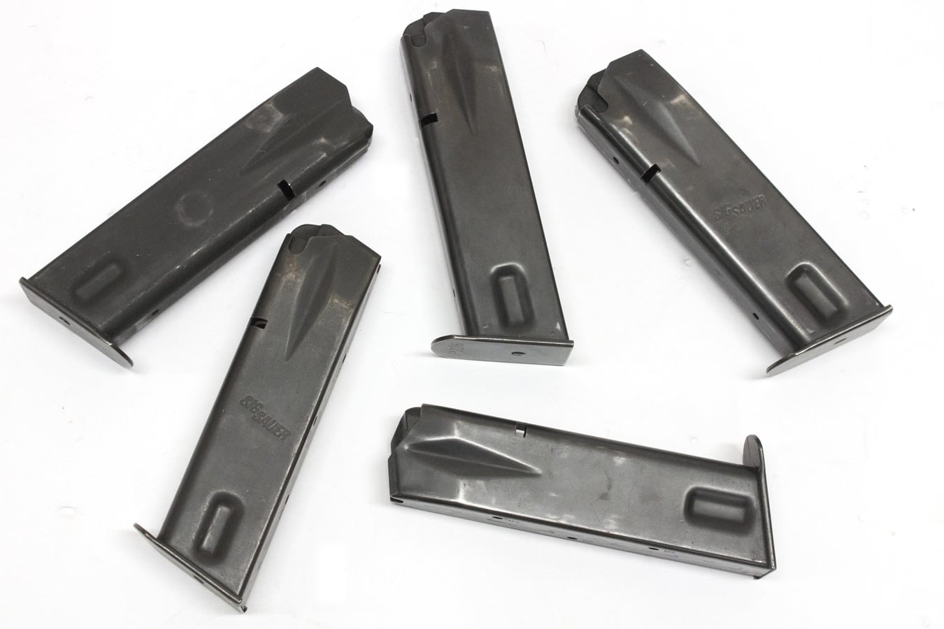 These are used 15-round 9mm factory Sig Sauer P226 magazines, which were traded in from a police department. Price is for one Sig Sauer P226 police trade magazine.