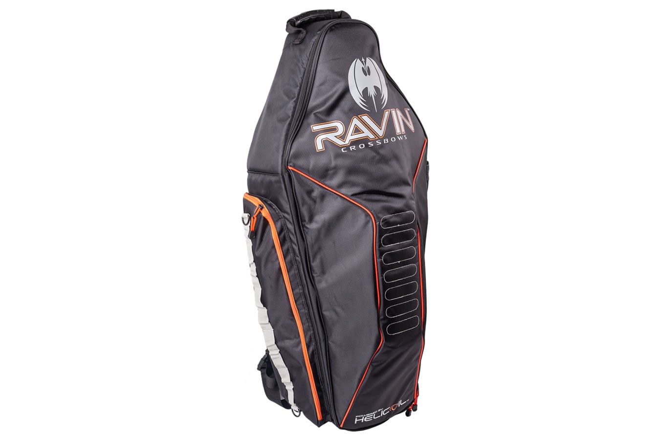 Handsome, slim and sleek design. This heavy duty, black soft-sided padded case is designed to first and foremost protect your Ravin Crossbow from damage. It can comfortably store a fully assembled Ravin Crossbow with mounted scope, quiver and bolts for quick and easy use. Other features: inside and outside pouches to safely store your quiver, bolts, scope, binoculars and other accessories, heavy duty handles and a backpack-style.