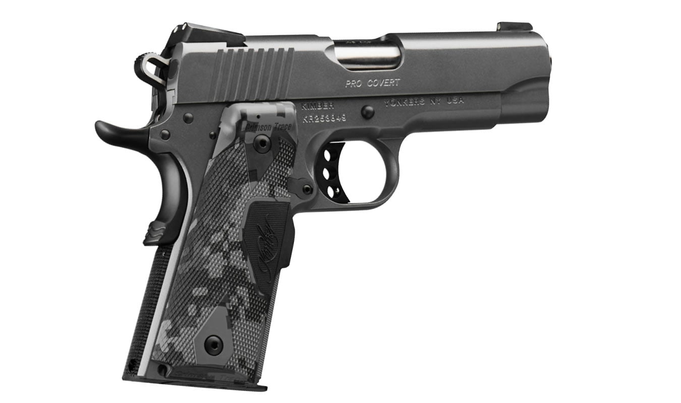 The Pro Covert 45 ACP from Kimber is the perfect combination of lightweight and meaningful features, such as Crimson Trace Lasergrips, 30 lines-per-inch front strap checkering, a bumped and grooved beavertail grip safety, and special Carry Melt treatment.