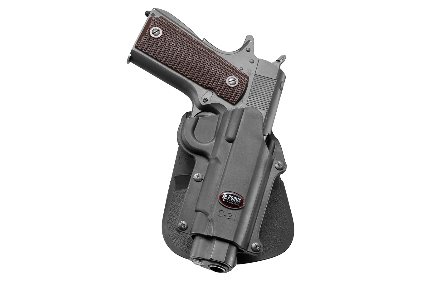 Fobus' Standard Series holsters feature passive retention with rapid deployment. These holsters have a state of the art design, with injection molding of high density polymer to create a holster which cannot be duplicated in leather or any other material. It has a low profile design for concealability, steel-reinforced rivet attachment, and weighs just 2 oz. This Paddle model is configured for right-handed carry and is compatible with: 1911-style pistols without rail.