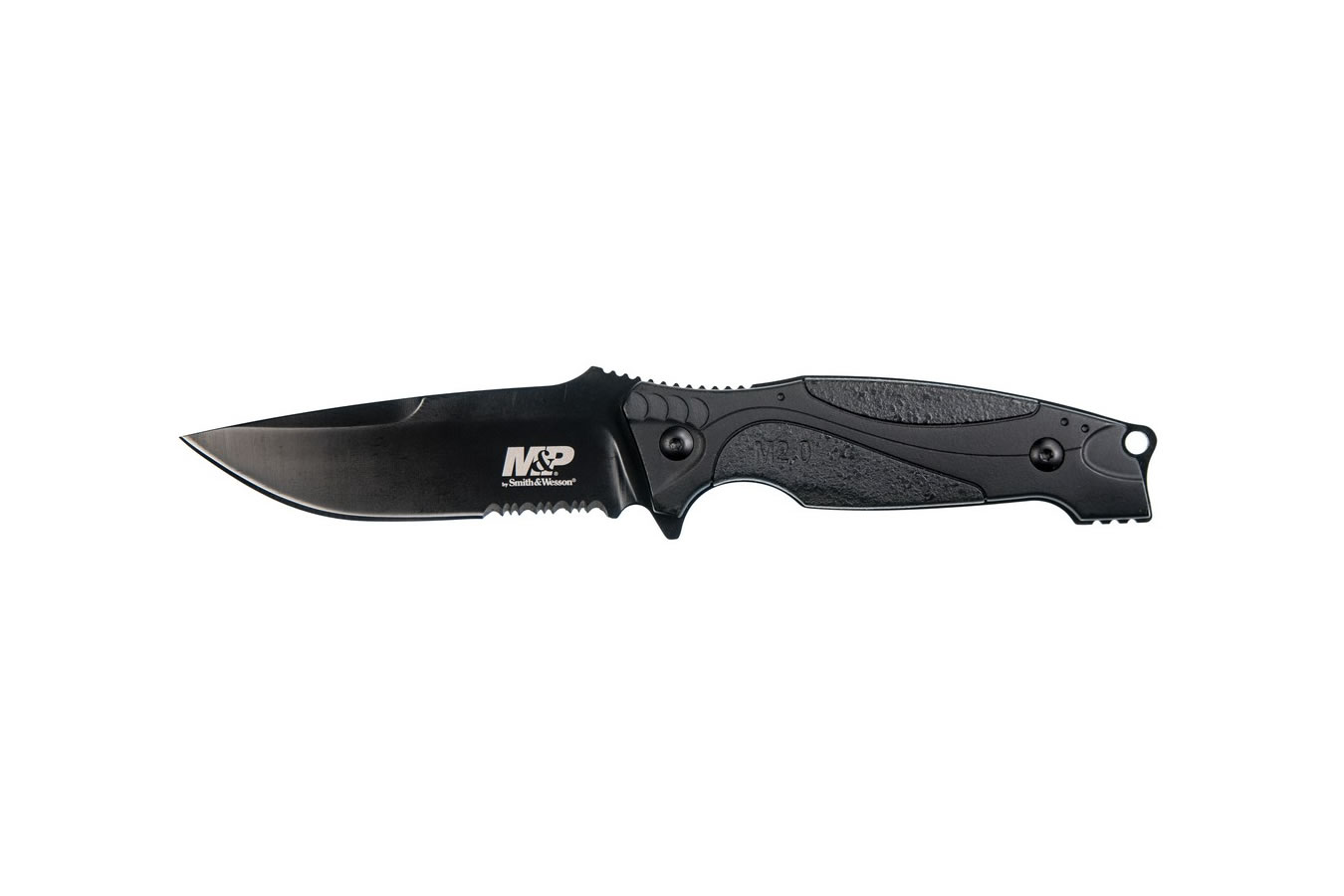 The M&P M2.0 fixed offers a tough fixed blade design with a slim handle for comfortable, lightweight carry. This model sports a black finished blade with partial serrations and a black handle.