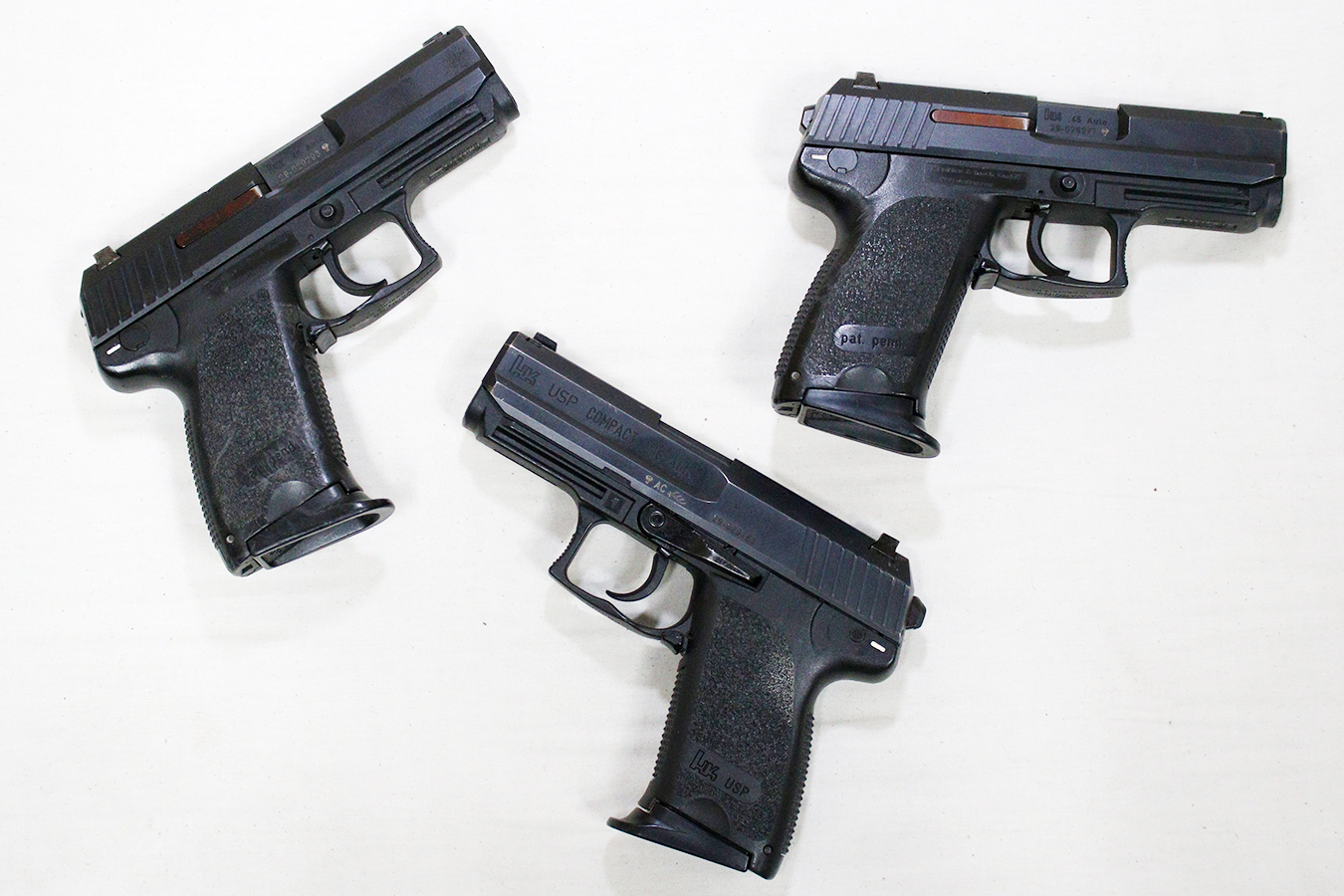 The photos represent the overall condition of these H&K USP .45 Auto Compact police trades, which are in fair condition. Each pistol comes with two magazines.