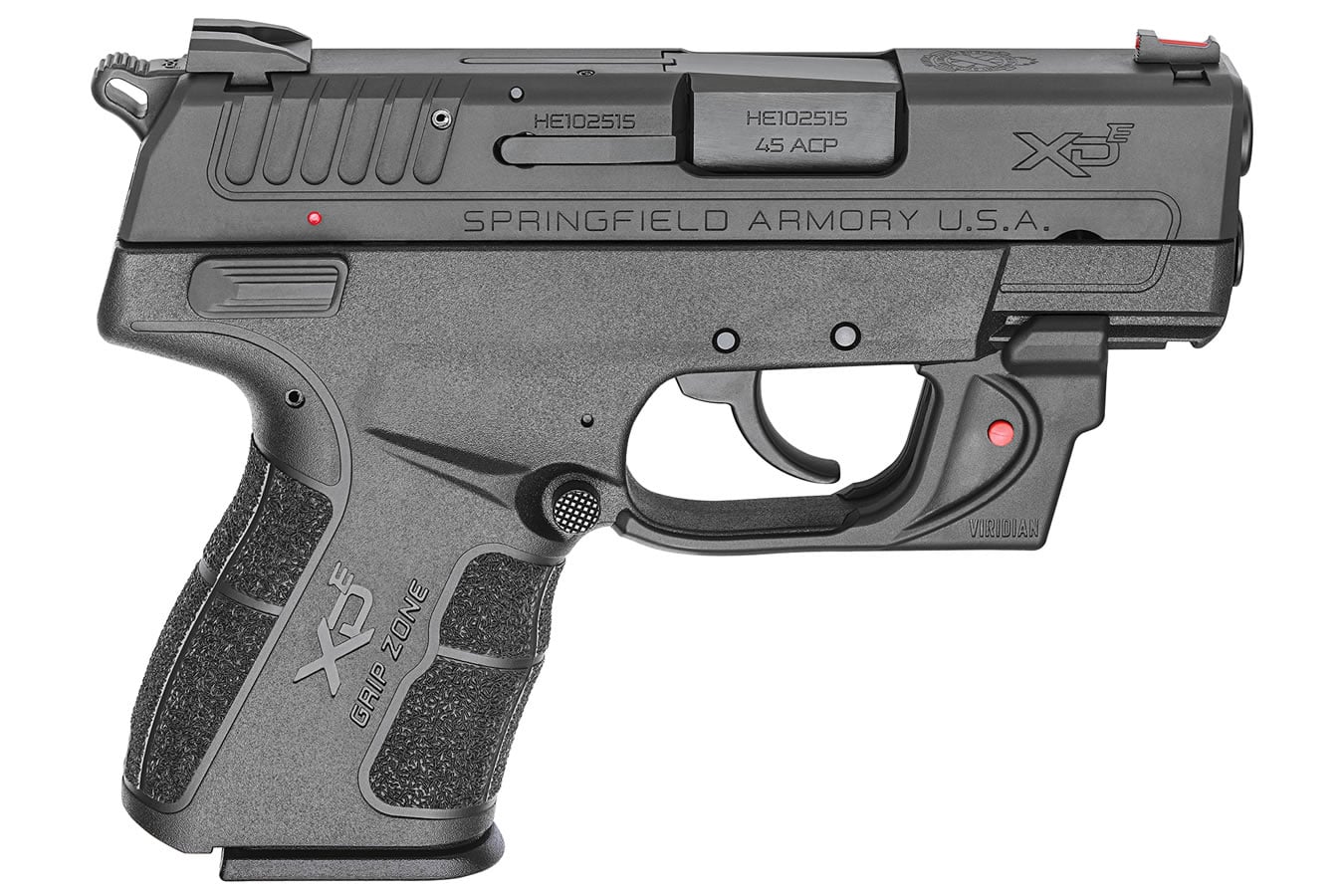 Like its 9mm sibling, the new .45 model sculpts XD-E “point and shoot®” ergonomics into a sleek 1-inch wide polymer frame to eliminate printing, with a 3.3” Melonite-treated barrel for ideal concealability.