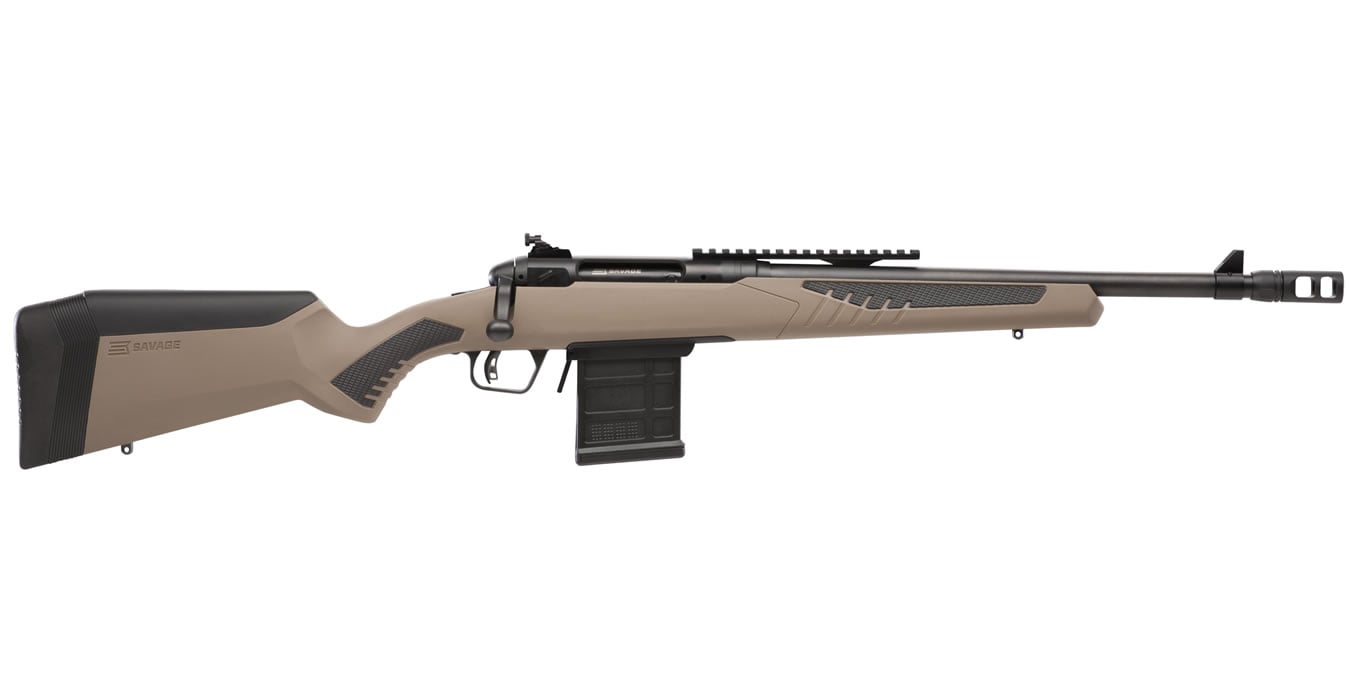 When a rifle is meant for making fast, accurate shots from a variety of shooting positions—including offhand—it needs to be a natural extension of the shooter’s body. The Savage 110 Scout’s AccuFit™ system does this, letting shooters easily customize the length-of-pull and comb height for a personalized fit, while the user-adjustable AccuTrigger™ offers a crisp, clean pull. Together with the AccuStock™, which secures the action three-dimensionally along its entire length, the 110 Scout provides the fit and function of a custom rifle—right out of the box. It’s also flush with features, including a carbon steel barrel, muzzle brake and AICS-style detachable box magazine that holds 10 rounds. Its rugged synthetic stock, forwardmounted rail and adjustable iron sights are perfectly suited to the versatile platform.