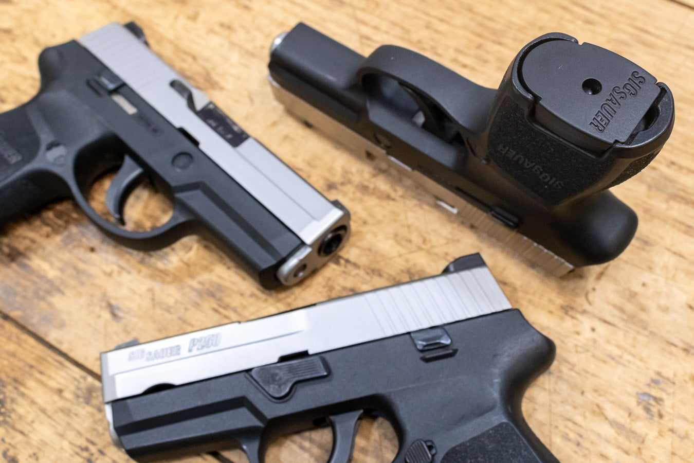 The photos represent the overall condition of these Sig Sauer P250 40 SW Ohio State Highway Patrol pistols, all of which are in Good Condition. Price is for one Sig Sauer P250 police trade-in pistol, which comes with two 10-round magazines.