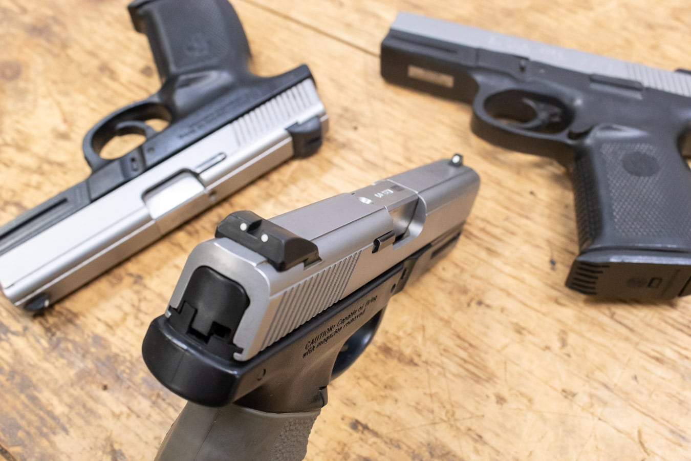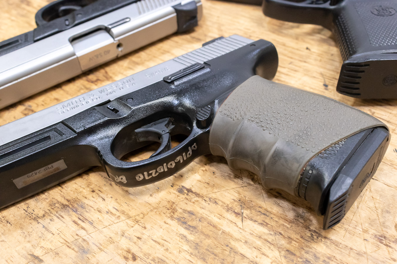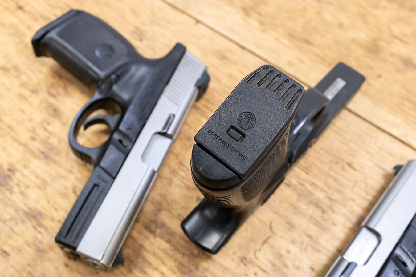 These photos represent the overall condition of these Smith & Wesson SW40VE 40 S&W used firearms, which are in fair condition. Each pistol comes with one 14-round magazine.