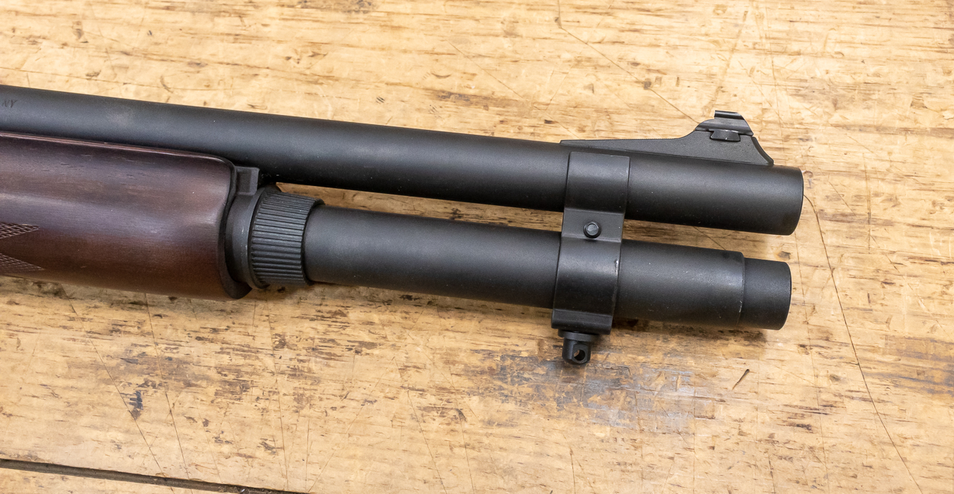 These photos represent the exact firearm for sale a Remington 870 Tactical 12 Gauge Police Trade-in Shotgun with wood stock and rifle sights. This shotgun is missing the rear dovetail on the iron sights.