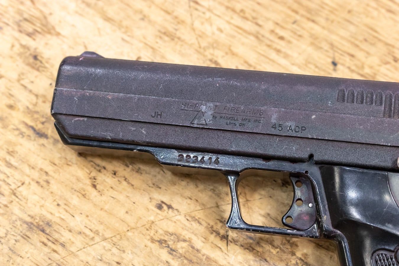 These photos represent the exact firearm for sale a HiPoint JH 45 ACP Police Trade-in pistol. This pistol does not come with a magazine.