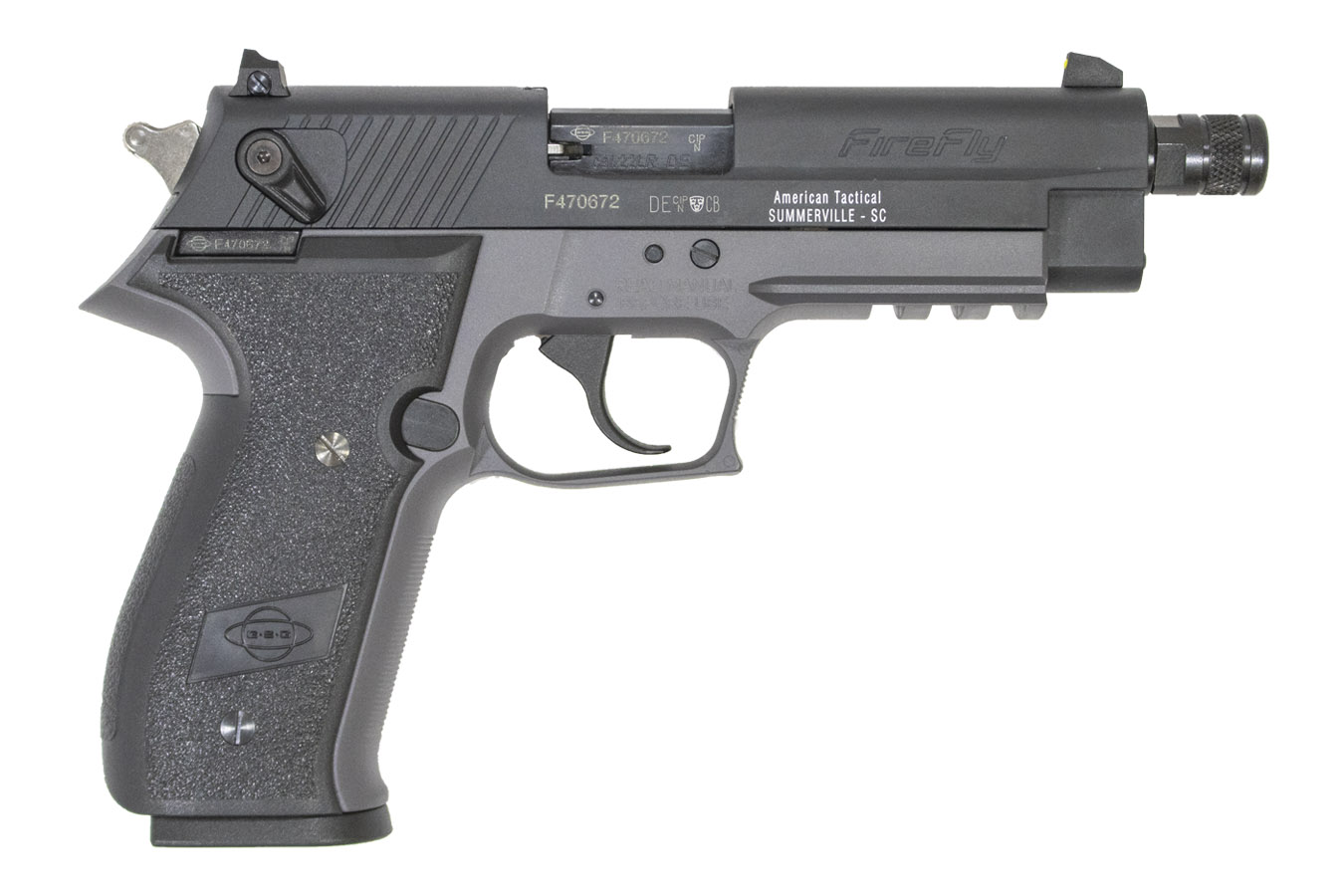 The GSG FireFly features a wear-resistant alloy frame outfitted with an integrated accessory rail. The slide features adjustable sights, and along with the rugged blowback system, fixed barrel and superior ergonomic grip, the GSG FireFly delivers exceptional accuracy. Additional safeties include an internal locking device and slide mounted ambidextrous safety.