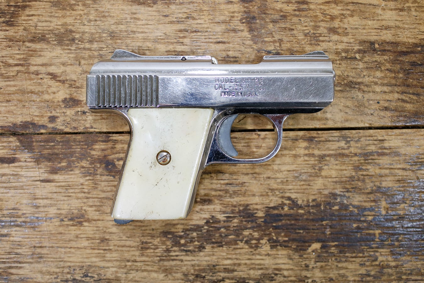 These photos represent the exact firearm for sale, a Raven Arms MP-25 25 Auto Police Trade-In Pistol.