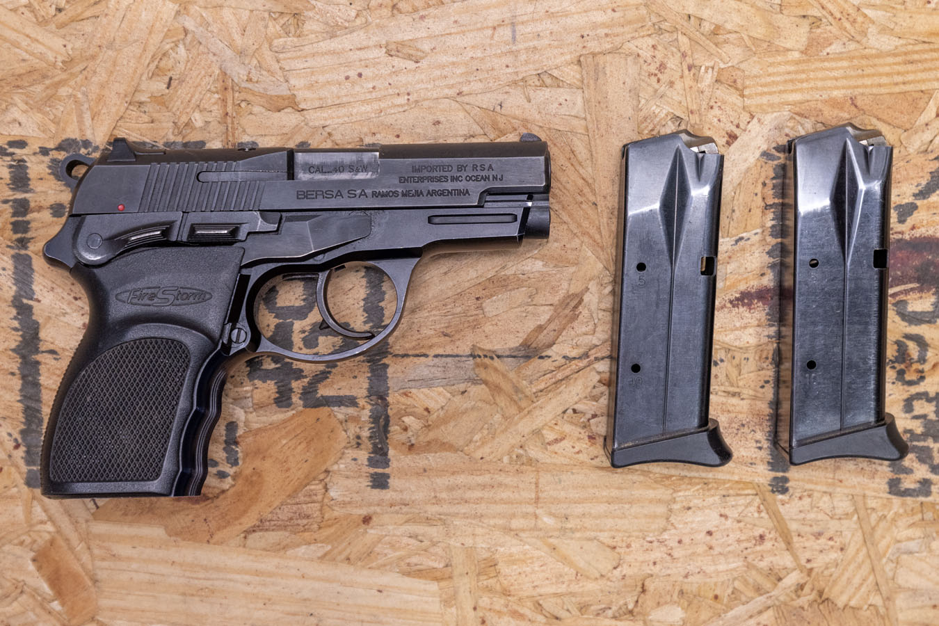 These photos represent the general condition of the firearm for sale, a Bersa MiniFirestorm .40S&W Pistol. The price is for 1 firearm.