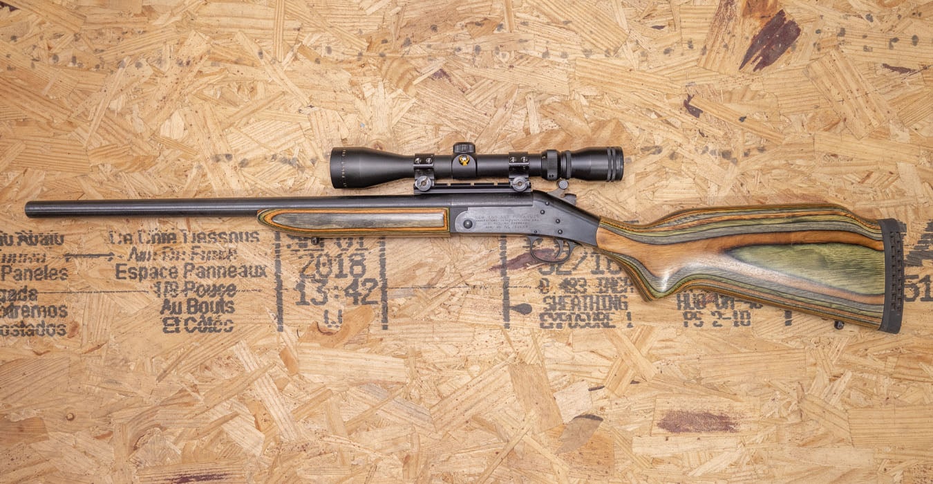 These photos represent the general condition of the firearm for sale, a New England Firearms SB2 .243Win Rifle, Limited Edition with Laminated Stock and Simmons 3-9x 40mm Scope. The price is for 1 firearm.