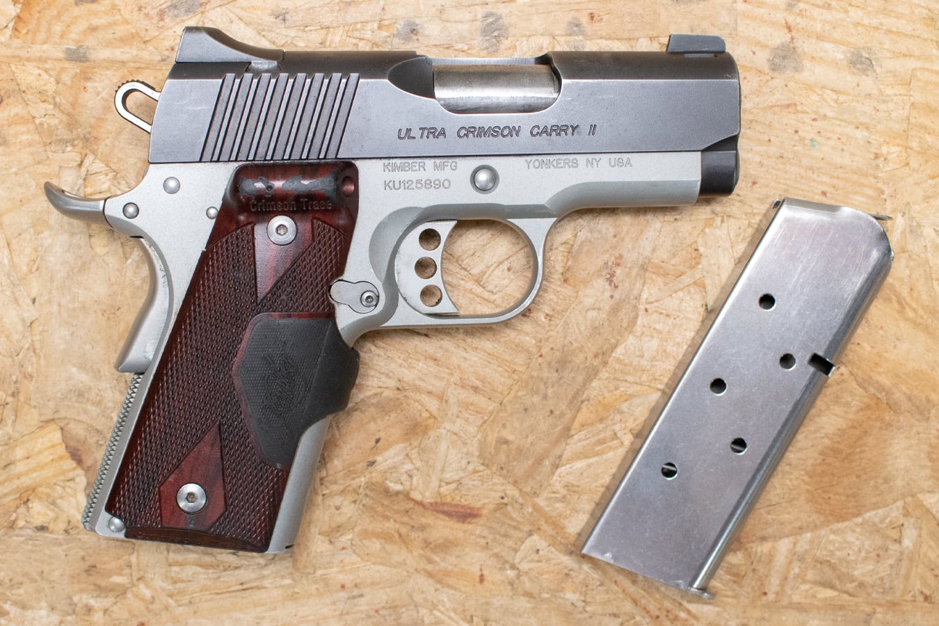 These photos represent the general condition of the firearm for sale, a Kimber Ultra Crimson Carry II .45ACP Pistol with Crimson Trace Grips. The price is for 1 firearm.