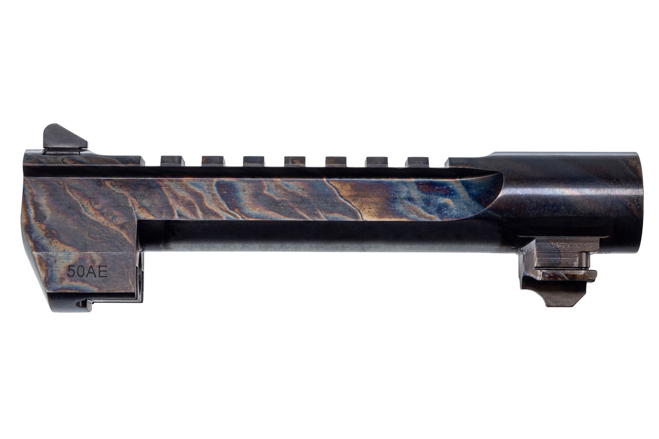 This Desert Eagle 6-inch Mark XIX barrel, features a case color hardened finish with 6 slots, Weaver rail in picatinny style rail. It is made in the USA.