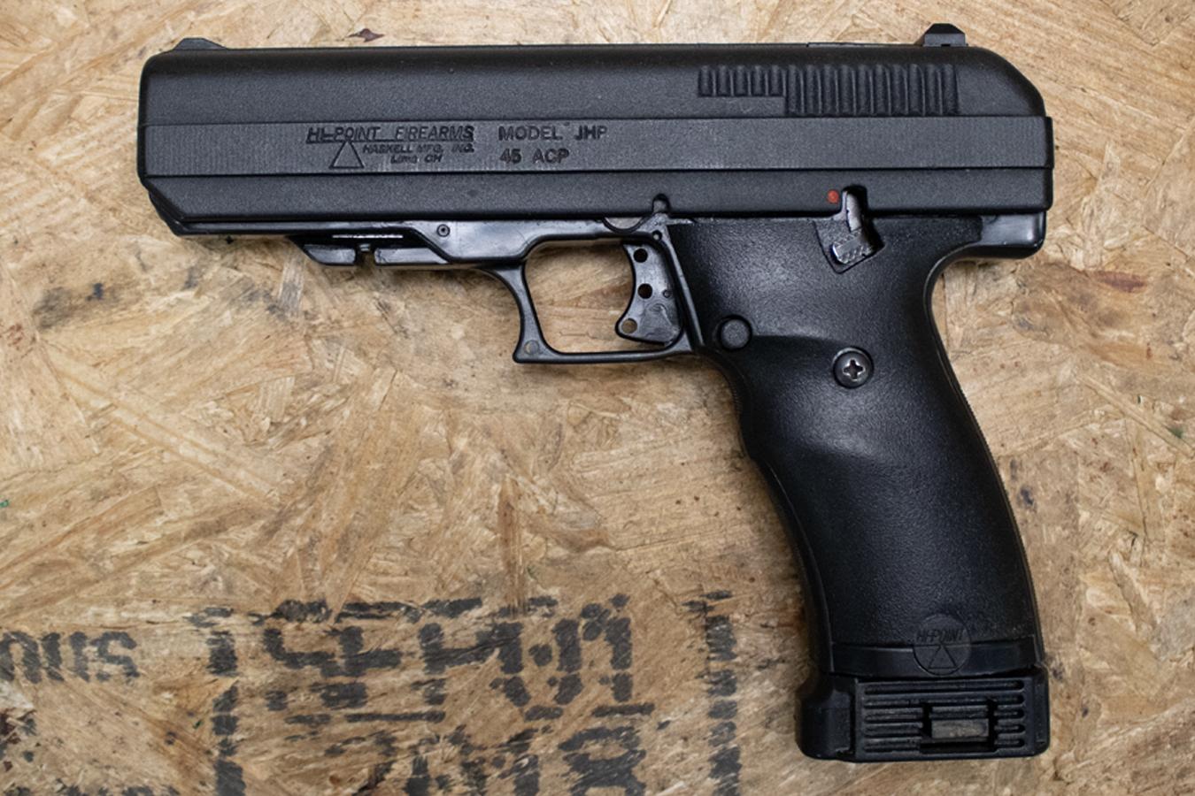 These photos represent the general condition of the firearm for sale, A Hi-Point JH{ .45ACP Semi-Automatic Pistol with Manual Safety.
