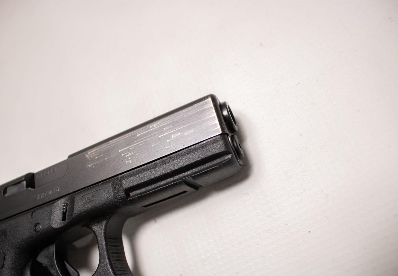 These photos represent the general condition of the firearm for sale, Glock 22 Gen4 40S&W Semi-Auto Pistol with Two Magazines, OEM Box, Three Backstraps, Grip Tape, and Front Accessory Rail.