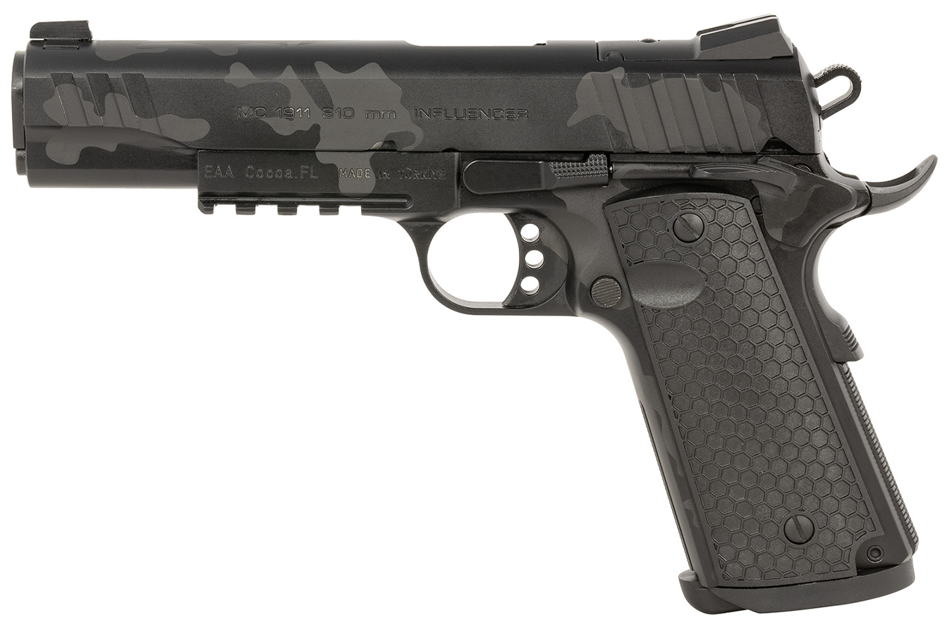 The MC1911 Influencer is designed to cater to a wide range of preferences.The pistol features an optic ready slide, RMS/RMSc; ambidextrous safety; adjustable sight; long hole hammer; accessory rail; enhanced trigger system and magazine well.