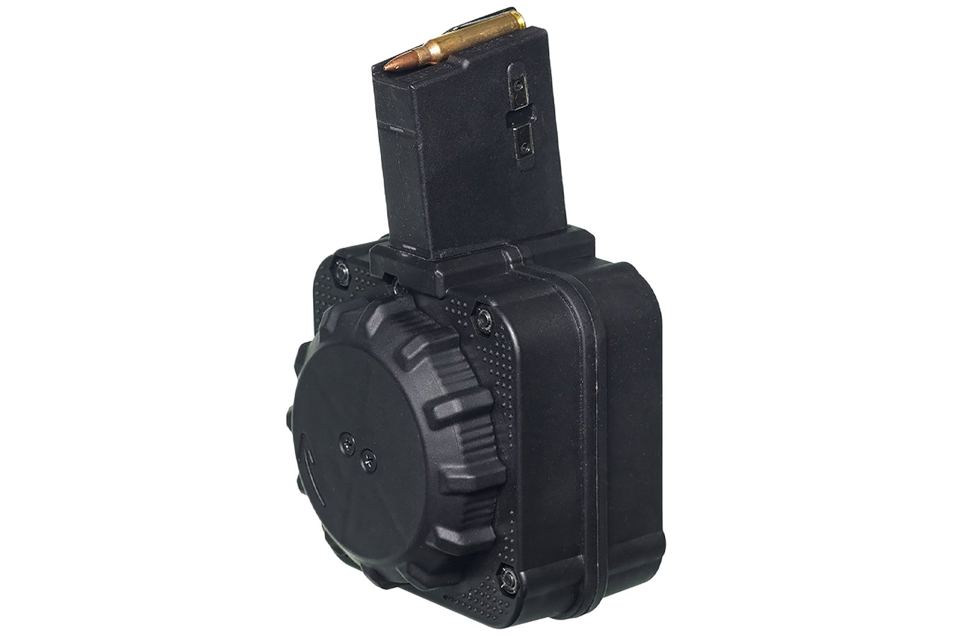 This drum replacement or spare magazine is compatible with your AR-15. It is constructed of DuPont Zytel polymer with injection molded mag follower and mag spring formed from chrome silicone wire. Made in the USA.