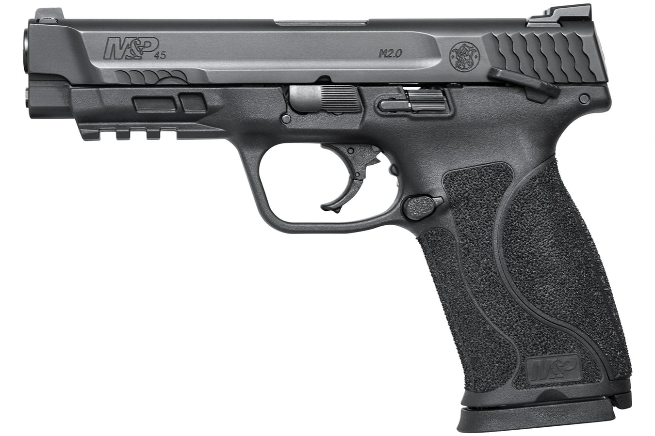 The M&P M2.0 45ACP pistol, the newest innovation to the respected M&P polymer pistol line. Designed for personal, sporting, and professional use, the M&P M2.0 delivers an entirely new platform, introducing innovative features in nearly every aspect of the pistol, including trigger, grip, frame, and finish. Highlights of the M&P M2.0 pistol include an extended stainless-steel chassis and high grip to barrel bore axis ratio for reduced muzzle rise and faster aim recovery. The M&P M2.0 pistol further improves performance with a fine-tuned, crisper trigger, lighter pull and a tactile and audible reset. The M2.0 includes an aggressively-textured grip and four interchangeable palmswell inserts for optimal hand-fit and trigger reach. The striker-fire, semi-automatic polymer pistol includes two magazines, a limited lifetime warranty and a lifetime service policy.