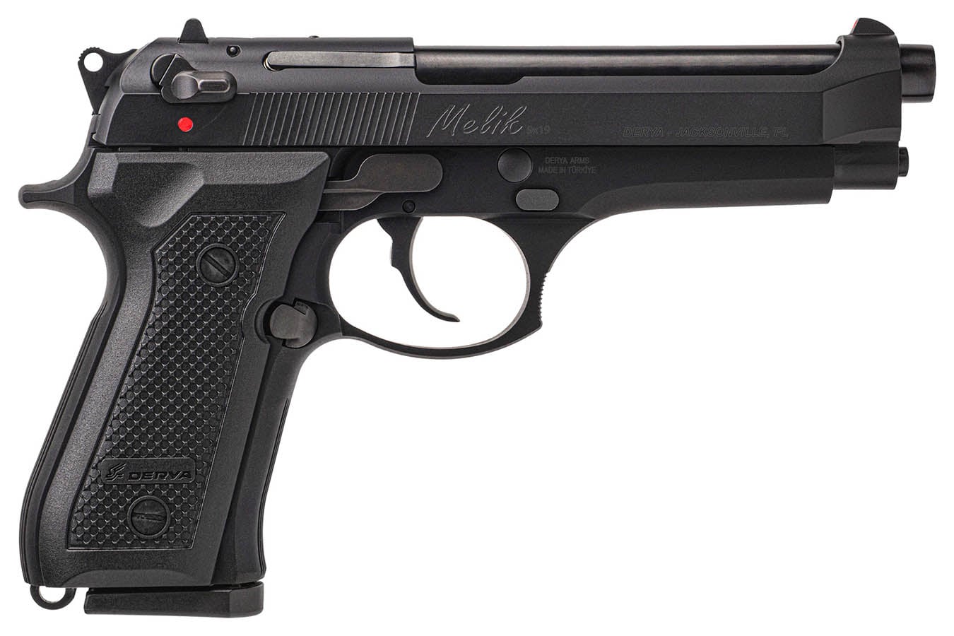 The Melik offers a double action design with a recoil delayed locking block system. Features an aluminum frame, 4140 steel slide and ambidextrous safety.