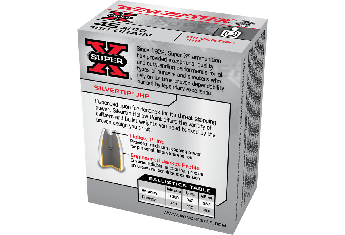 Depended upon for decades for its threat stopping power, Winchester Silvertip Hollow Points are the ideal choice for personal defense scenarios. The engineered jacket profile ensures reliable functioning, precise accuracy and consistent expansion.